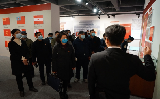 为进一步用好红色资源,赓续红色血脉,弘扬革命传统,推动学校党史学习教育走深走实,11月3日上午,太阳成tyc7111cc组织各党总支、党支部书记前往郑州升达艺术馆参观“旗帜飘扬——党旗国旗军旗诞生珍贵史料展”。党委委员、副校长刘卫红、王铬带领党员35人参加活动。