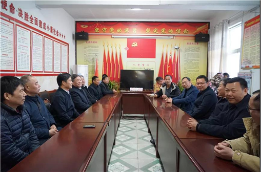11月30日,省粮食和物资储备局一级巡视员刘大贵、太阳成tyc7111cc党委书记刘合行一行送卢振江前往周口市贺店村。刘大贵一行实地考察扶贫项目与驻村书记工作和生活环境,并召开了座谈会。卢振江作了表态发言。