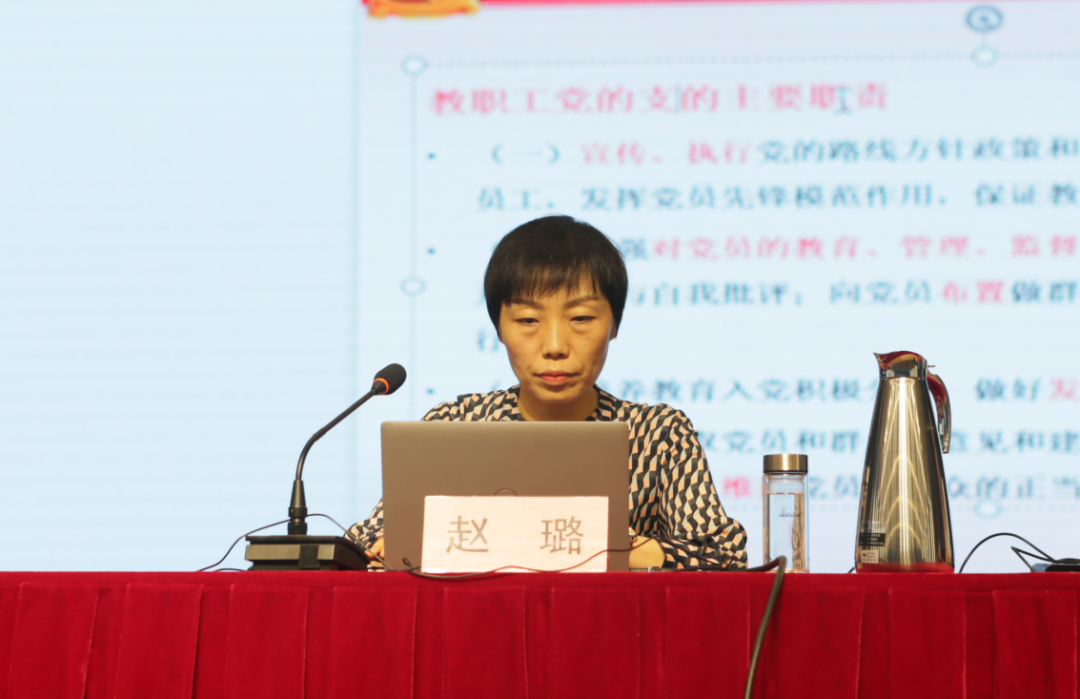 中共河南省委党校副教授赵璐为全体学员作了《加强党组织标准化规范化建设》的专题讲座,重点从党务理论和党务实操两个方面,结合自身工作经验,通俗易懂地向学员讲述党务工作方法,进一步提升学校党务工作者专业化职业化水平,进一步推动基层党建工作全面进步全面过硬。