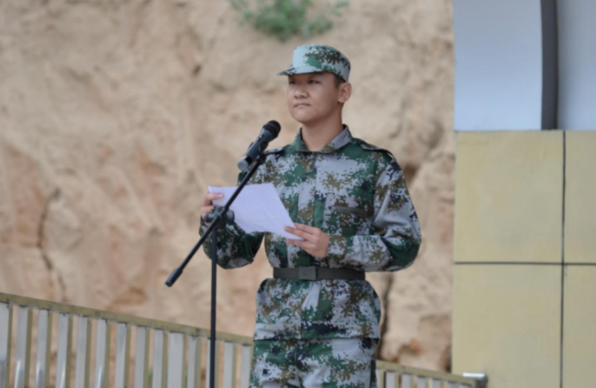 工商管理学院20城轨102班欧云勃代表全体2020级学生表示:坚决服从教官的指挥,高标准、高质量地完成本次军训,以昂扬的精神风貌和过硬的军事技能接受学校的检阅。
