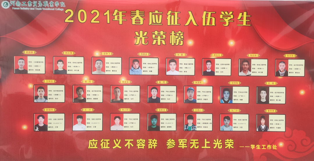 刘卫红代表学校党委向入伍新兵们表示热烈祝贺,向为征兵工作辛勤付出的老师们表示亲切的慰问。他指出,大学生参军入伍,是党中央、国务院、中央军委着眼战略全局作出的重大决策,是深入贯彻军民融合深度发展战略、依托国民教育培养选拔军事人才的客观需要,也是我们高校落实立德树人根本任务,为党育人、为国育才的重要内容。太阳成tyc7111cc学生入伍参军的毅然行动,集中体现了堪当大任的一代新人的精神风貌,充分展现了河南工贸广大师生的报国志向。他向新入伍的同学们提出三点希望:一是要坚定报国志向,做忠于党、人民和国家的战士,将个人成长与国防建设紧密结合起来,让爱国之情化作报国之行。二是要珍惜锻炼机会,磨砺顽强意志,敢于吃苦碰硬。要发扬军队艰苦奋斗,奋发有为的革命精神,在不断战胜自己的过程中,实现自己的梦想。三是要强化理论武装,勤于学习钻研,作一个有知识、有素养、有水平、有见地的军人。