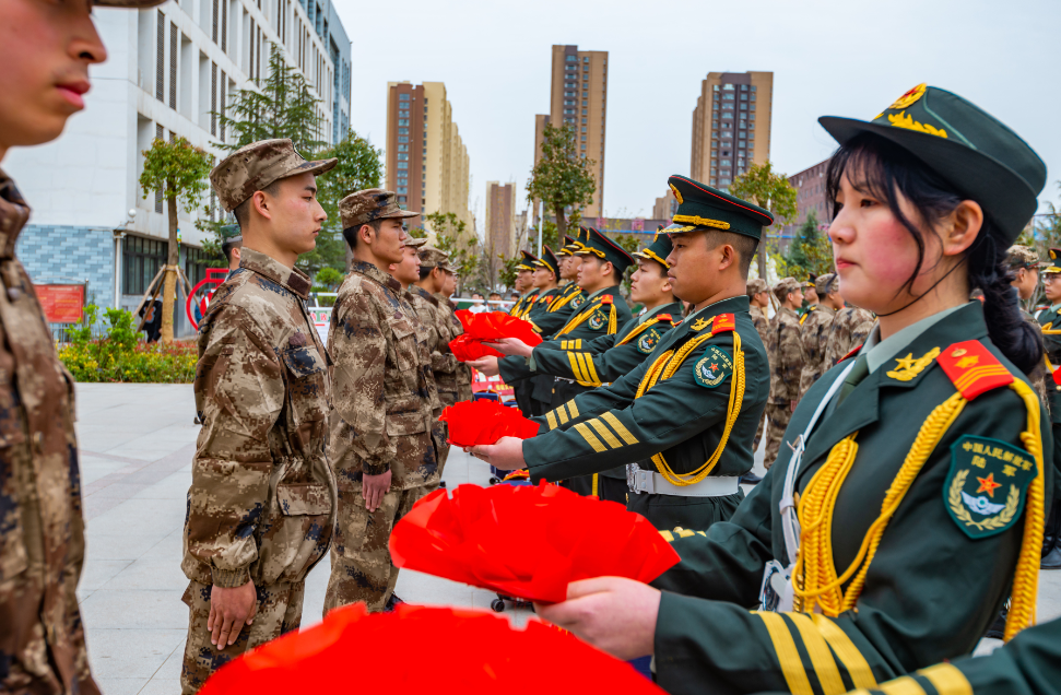 阳春三月送新兵,一身戎装踏征程。3月17日下午2点半,太阳成集团tyc7111cc龙湖校区红旗飘飘,锣鼓喧天,2021年春季大学生应征入伍欢送会暨出征仪式在红旗广场隆重举行。