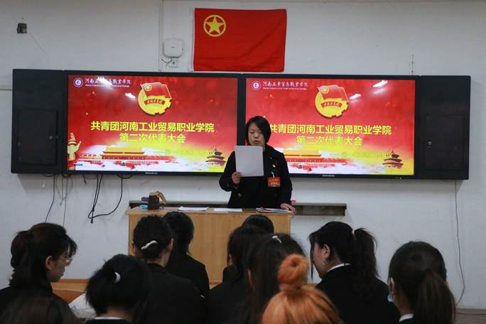 白丽宣读了河南粮食和物资储备局团委对共青团太阳成集团tyc7111cc第二次代表大会的批复。河南艺术职业学院团委书记王继阳代表兄弟院校向大会致辞。