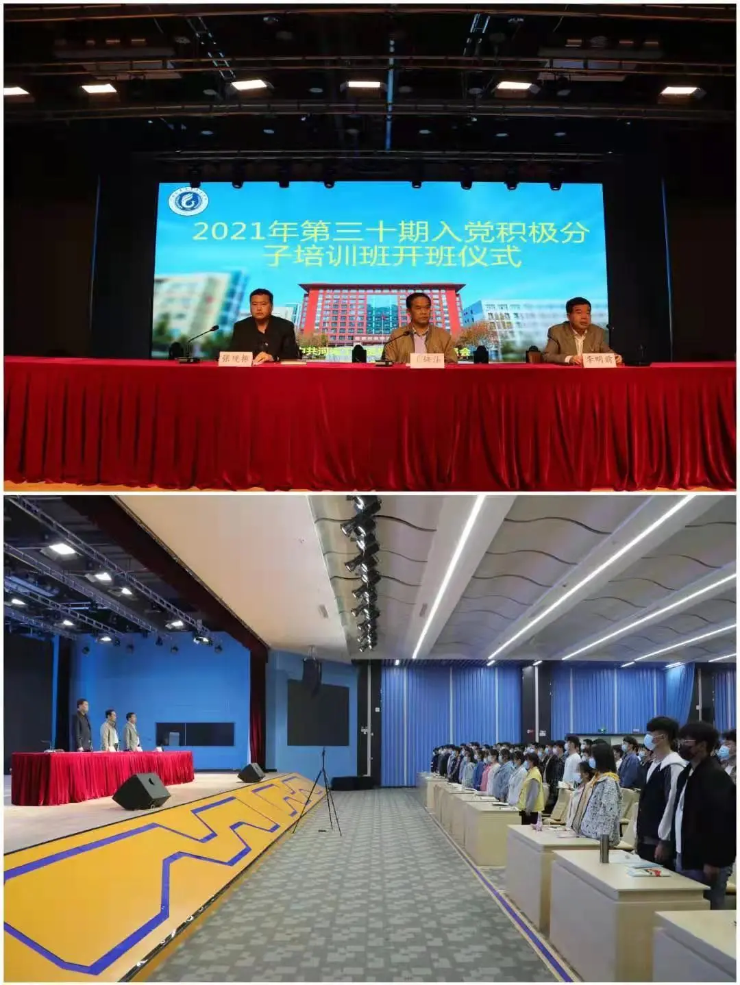 2021年4月23日下午,中共太阳成集团tyc7111cc委员会党校在龙湖校区学术会议报告大厅举办了第三十期入党积极分子培训班开班仪式,组织600余名学员参加培训,优胜校区同步直播。校党委委员、纪委书记王修法和校团委书记张现振应邀出席开班典礼并发表讲话,开班典礼由党委组织部部长李明前主持。