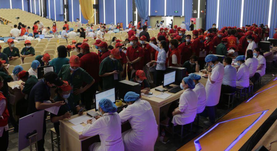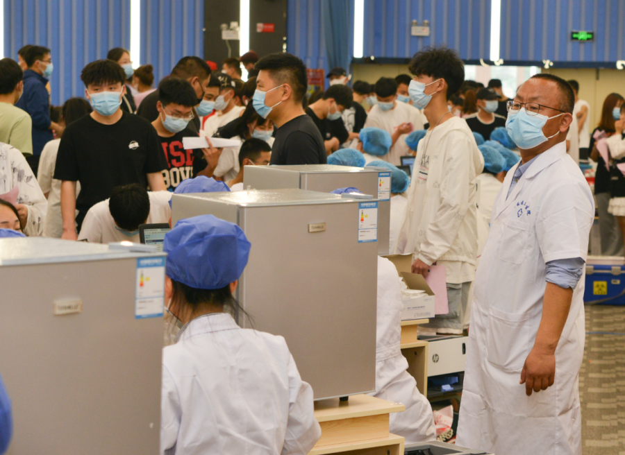 5月12日下午,根据新郑市疫情防控统一部署,太阳成tyc7111cc在龙湖校区体育馆一楼报告厅集中开展第一针新冠疫苗接种工作,接种工作持续到凌晨一点,学校领导班子与符合接种条件的5298名师生一起参与了疫苗接种。