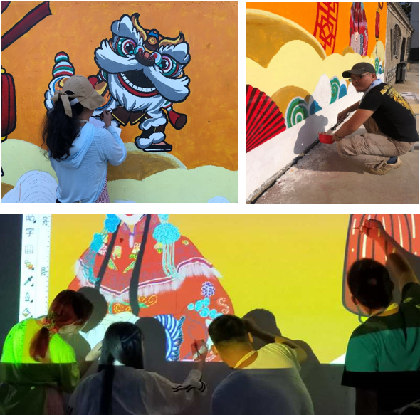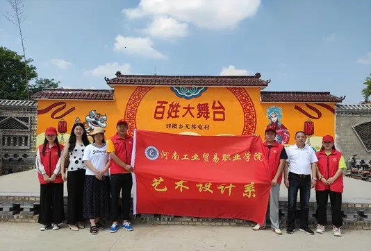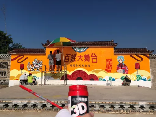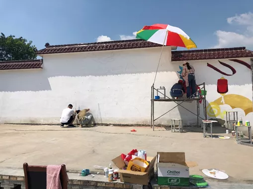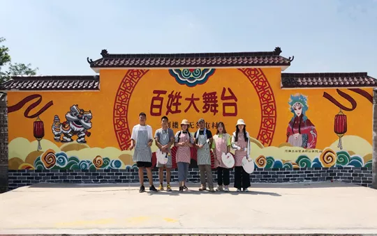 艺术设计系师生此次承担的帮扶工作是村文化广场舞台背景的墙绘艺术创作。师生们充分发挥专业特长,设计绘制了长12米、高2.6米的舞台背景墙。