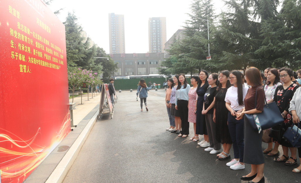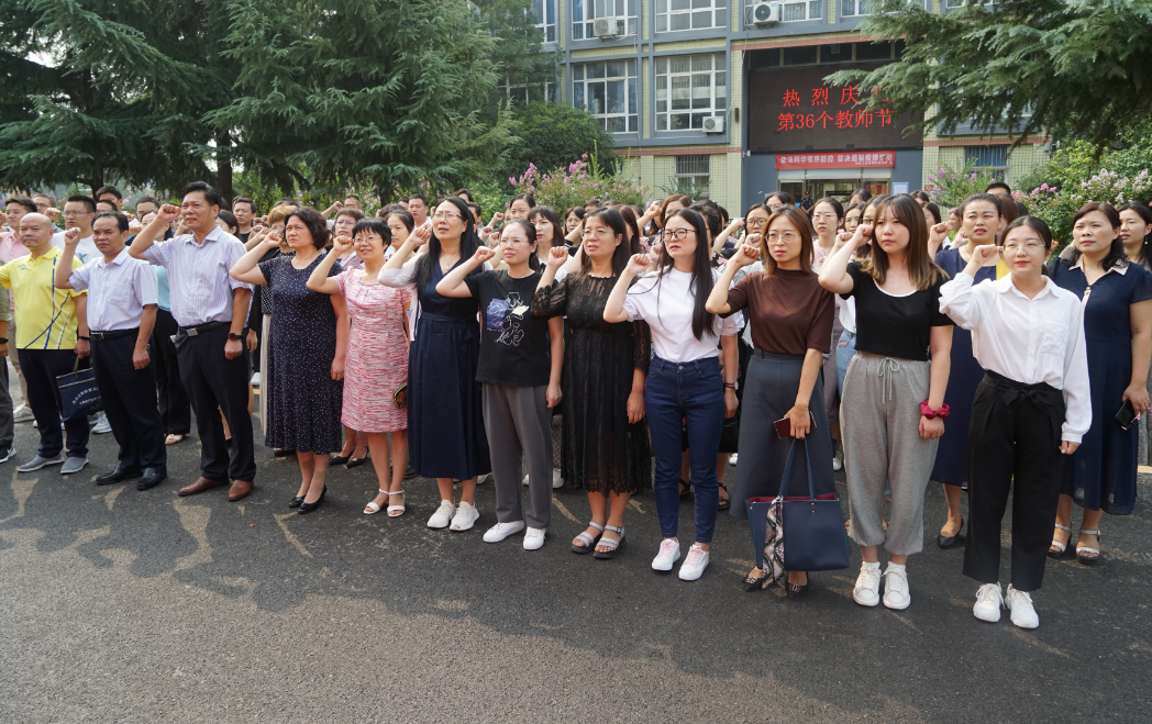 9月10日上午,我院组织教师开展了宣誓活动,以特殊的方式庆祝第36个教师节。上午10点整,教师代表们面向誓词,右手握拳庄严宣誓:“我志愿做一名光荣的人民教师,忠诚人民教育事业,贯彻党的教育方针。爱国守法,敬业爱岗;教书育人,关爱学生;传承文明,勇于创新;严谨治学,启智求真;为人师表,乐于奉献。为实现中华民族的伟大复兴而努力奋斗!”