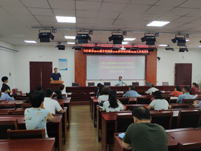 根据《太阳成集团tyc7111cc关于成立学术委员会的通知》(豫工贸院[2020]73号)及《太阳成集团tyc7111cc学术委员会章程》的要求,2020年7月10日,科学研究处针对通过了人力资源处资格审核的,符合第四批享受河南省政府特殊津贴两位候选人的情况,组织了25位学术委员会专家进行了申报把关和评审推荐,学院纪委全程监督。专家组推荐王晓航老师作为第四批享受河南省政府特殊津贴的候选人。