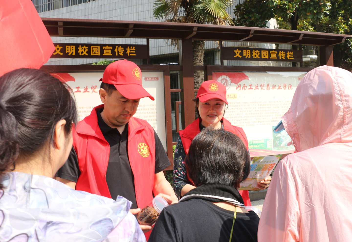 为进一步贯彻落实习近平总书记“关于在全社会深入学习雷锋、培育文明风尚”的重要指示,大力弘扬雷锋精神,落实学院文明校园创建活动要求,团委党支部积极响应学院党委号召,通过志愿河南网站发出活动招募通知,协同学院宣传部文明办、北校区资产监管处、以及同乐社区王永安副主任及相关工作人员,于6月11日上午在北校区开展了“垃圾分类,人人有责”暨“学雷锋活动月”垃圾分类宣传活动。