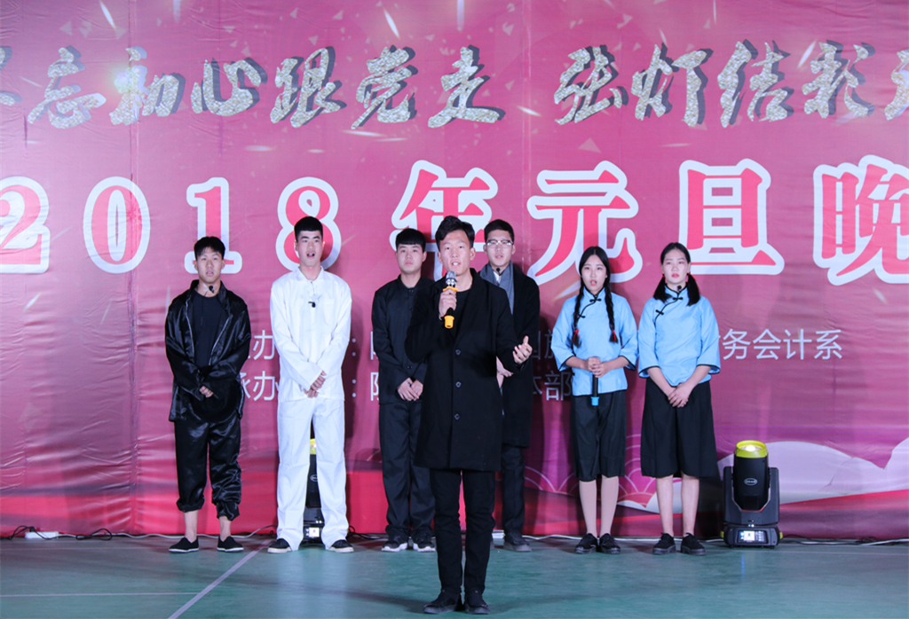 为了庆祝十九大的胜利召开,本次晚会以“不忘初心跟党走 张灯结彩谱新篇”为主题,话剧《战火中的大学生》、诗歌朗诵《写给父亲的信》、相声《十九大那些事》、默剧《人生》以及小品《在那遥远的地方》等以自己独具特色的表演和出神入化的角色,或真挚感人,或幽默诙谐,或针砭时弊,引得观众经久不息的喝彩声、欢呼声。