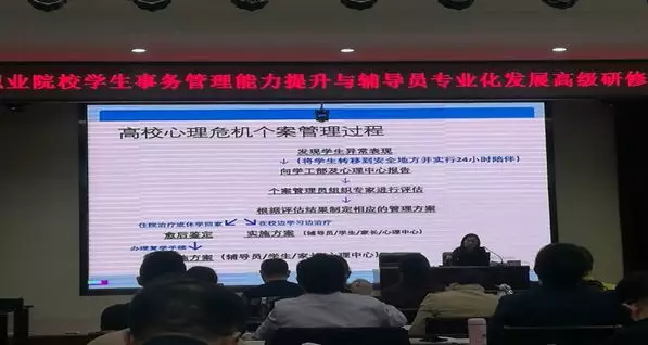 为深入贯彻落实全国高校思想政治工作会议精神,进一步加强高校辅导员队伍建设,在院党委的大力支持下,4月份,院学生工作部组织全院学管人员开展了网络思想政治教育、心理咨询技术及学生事务管理能力等三场辅导员专业素养提升培训。副院长刘卫红、学生工作部部长穆永恩,学生处副处长李松奇及各系主管领导、辅导员参加了本次培训。
