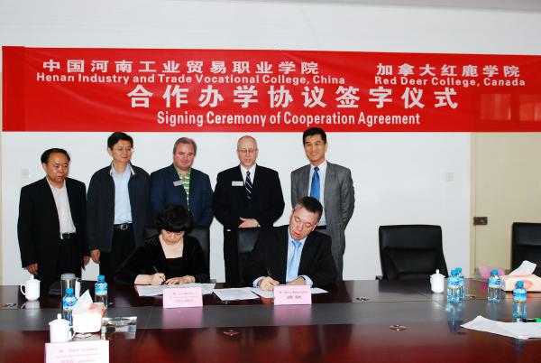 经过多方筹备,太阳成集团tyc7111cc与加拿大红鹿学院合作举办的“会计与审计高等专科学历教育项目”,已按照《中华人民共和国中外合作办学条例》及《中华人民共和国中外合作办学条例实施办法》的有关规定,向河南省教育厅呈报了申报材料,申报项目获得了省教育厅批准,并列入2013年学院招生计划。为加强合作双方的沟通和了解,加拿大红鹿学院唐纳德商学院院长一行5人于5月2日至5月3日来河南工贸学院访问交流。