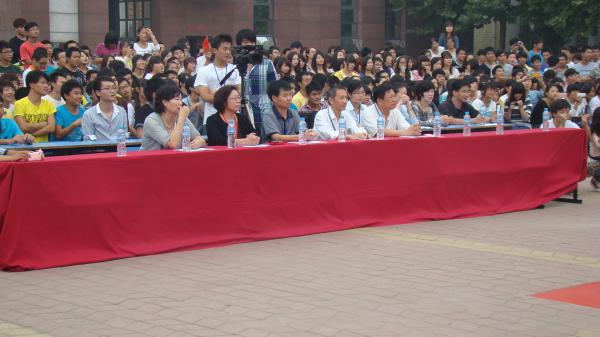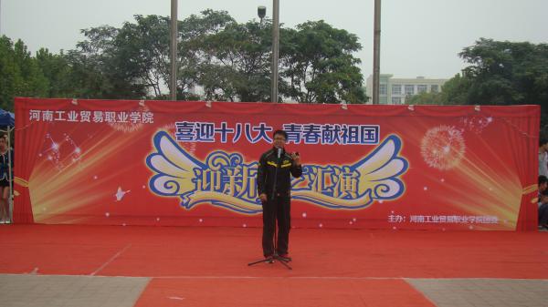 2012年9月25日,双节临近,下午三点我院红旗广场举办了“喜迎十八大,青春献祖国”迎新文艺汇演。本次文艺汇演由院团委主办,院文艺部、院社团部、院大学生艺术团、院广播站、院民族舞团承办。学院领导孙柏梁、于学军、周春玲、刘炜、刘国成在百忙中观看了本次文艺汇演。