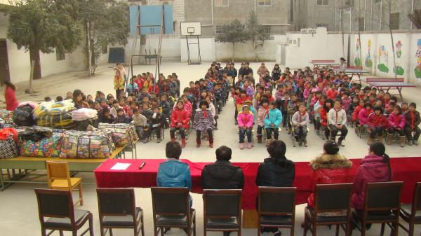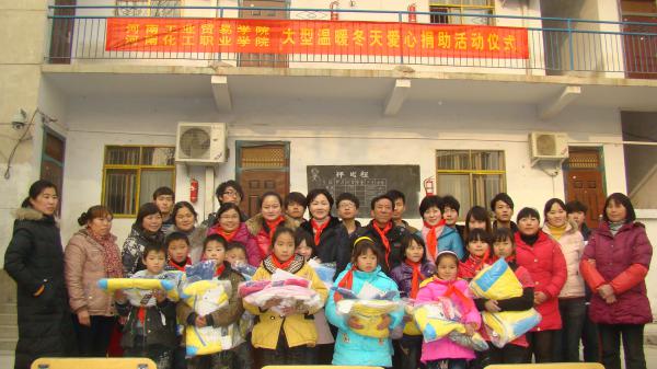 在团省委、省直团工委开展的“温暖冬天,希望工程爱心大动员”活动的感召下,院团委5名老师和8名学生干部于12月22日下午,满载着工贸学子的爱心与祝福,来到了圃田乡河沟王小学,开展“温暖冬天•2011希望工程爱心大动员”捐赠活动。