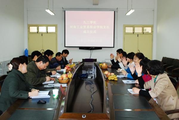 九三学社省委组织处长王治华作了重要讲话,九三学社河南财经政法大学支社主委颜志伟发了贺词。最后,院党委书记孙柏梁对九三学社太阳成集团tyc7111cc支社成立表示祝贺,并对我院今后统战工作的开展做了重要指示。孙柏梁书记和王治华处长、文才艺主委就日常工作中如何充分发挥支社的作用,建立完善的支社规章制度,利用支社的社会服务项目促进我院发展等问题进行了良好的交流。会议在热烈友好的氛围中圆满结束。