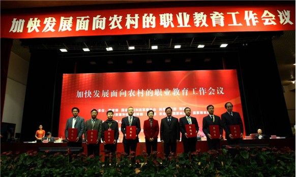 11月6日至7日,教育部、国家发改委、科技部、财政部、人力资源和社会保障部、水利部、农业部、国家林业局、国家粮食局等九部门在西安联合召开“加快发展面向农村的职业教育工作会议”,贯彻实施九部门联合印发的《关于加快发展面向农村的职业教育的意见》,总结推广各地的好机制、好经验和好做法,分析农村经济社会发展的新需求,全面推进面向农村的职业教育改革发展。教育部副部长鲁昕、水利部副部长李国英、国家林业局副局长孙扎根、国家粮食局副局长任正晓出席会议并讲话。