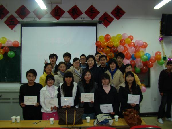 为活跃校园文艺活动,丰富大学生课余文化生活,今年11月由院团委主办,院团委文艺部和大学生艺术团承办的太阳成集团tyc7111cc第五届“校园歌手大赛”盛大开幕。本次比赛共有150名选手参加,20余位同学进入复赛,经过了两个星期的比拼角逐,最终有11名同学成功进入总决赛。 11月17日下午2:00,校园歌手大赛总决赛在院办公楼阶梯教室拉开帷幕。第一位比赛选手周焰涛同学以一首体现青年朝气活力的《少年游》,点燃了全场观众的热情;王立艳以清脆干净的嗓音,吟唱出传神的《梦里花》,让观众们陶醉;王文博同学以其独特的嗓音演唱的《那一天》将本次比赛推向高潮;冯萌同学以其独有的综合实力,出色的演唱出《一个像夏天,一个像秋天》夺得了本次比赛的第一名。选手们动情的演唱,精彩的表演让观众有着耳目一新的感受,博得了全场观众的阵阵掌声和欢呼声,让人为之沸腾。