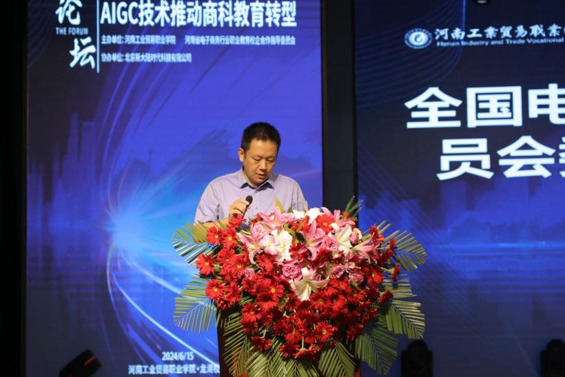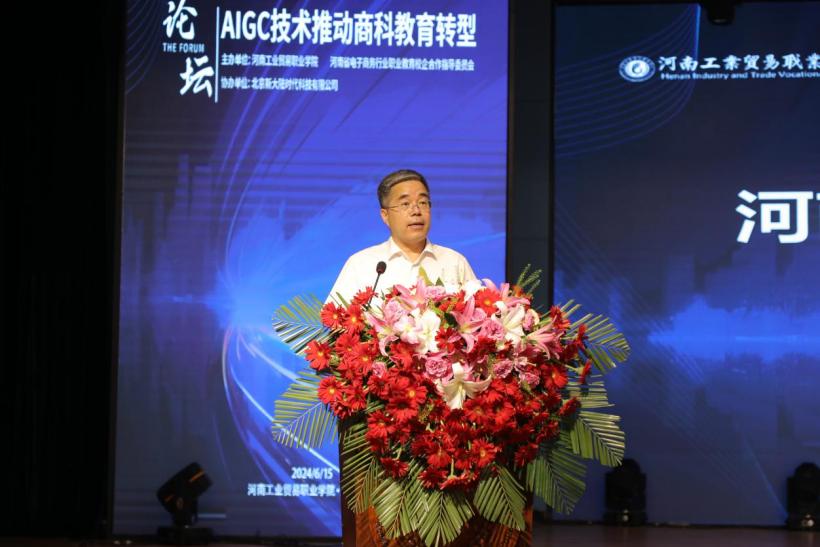 为深入贯彻党的二十大精神,积极响应政府工作报告中关于发展人工智能产业的号召,推进教育数字化,6月15日,太阳成tyc7111cc与河南省电子商务行业职业教育校企合作指导委员会联合主办“AIGC技术推动商科教育转型”论坛。校党委书记李国锋出席论坛,党委副书记、校长曹利强和省电子商务行指委秘书长张苏丰致欢迎词,论坛由副校长李强主持。