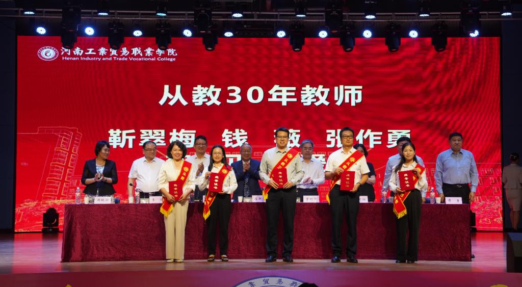 会上,李国锋带领全体教师重温教师誓词。会议表彰了获得省级及以上荣誉的集体和个人,为从教30年以上教师颁发荣誉证书。教师代表马迪、从教30年教师代表贺贝、学生代表马豪分别发言。