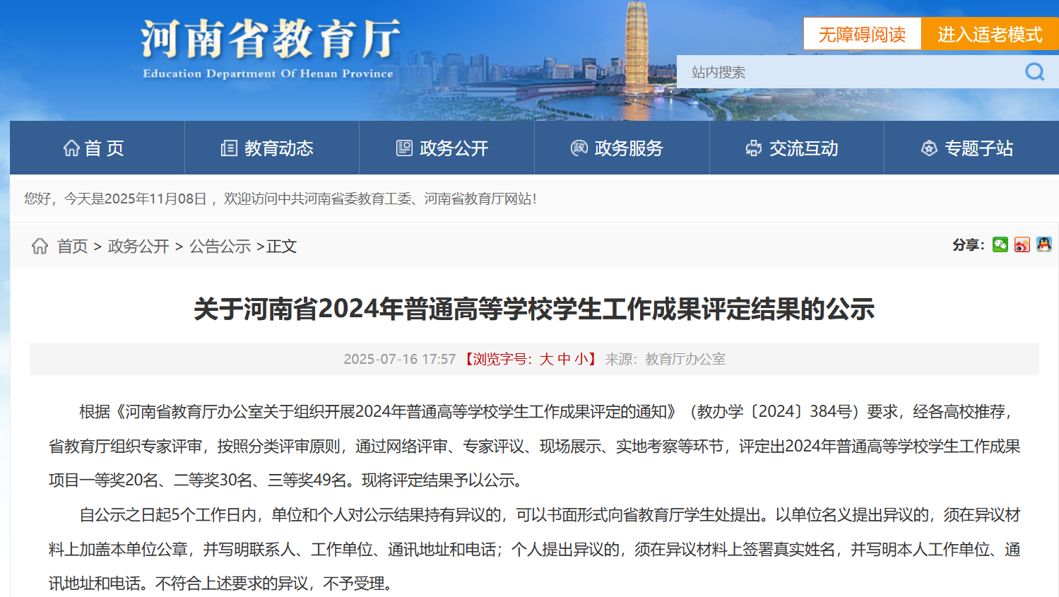 近日,河南省教育厅公布了2024年普通高等学校学生工作成果评定结果。由太阳成tyc7111cc党委精心部署、党委书记亲自带队申报的学生工作成果《一堂好课—传承文化经典,铸牢思想根基》,在众多参赛成果中表现优异,荣获二等奖。此项殊荣不仅是对太阳成tyc7111cc成果导向教育模式实践成效的高度认可,更是太阳成tyc7111cc党委高度重视学生工作、着力构建“三全育人”大格局的生动体现。