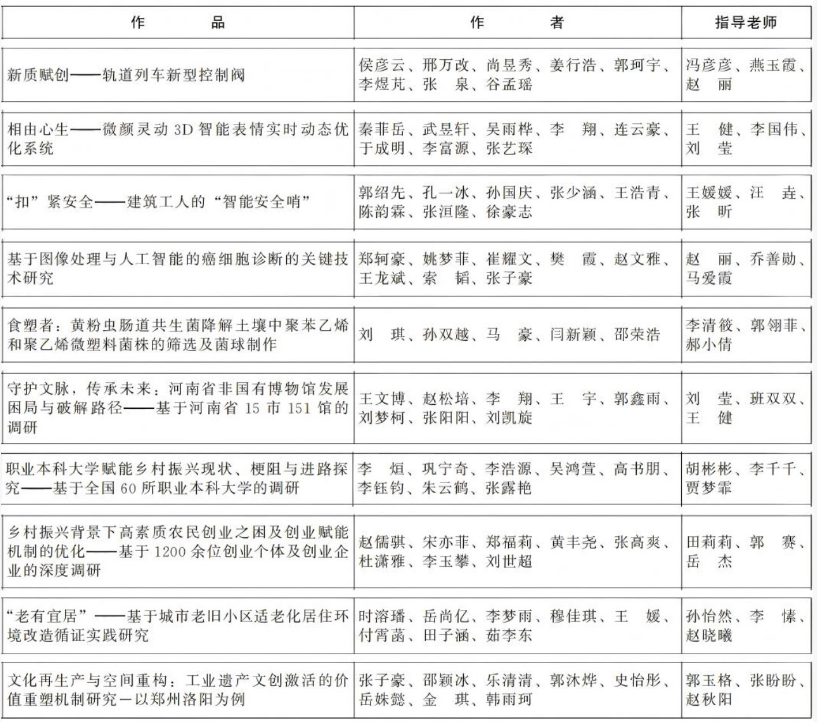 近日,第十七届“挑战杯”河南省大学生课外学术科技作品竞赛获奖名单揭晓。太阳成tyc7111cc师生再创佳绩,共斩获特等奖1项、一等奖10项、二等奖3项、三等奖10项,获奖数量与质量均实现历史性突破,彰显了太阳成tyc7111cc在人才培养与科技创新领域的育人成效。