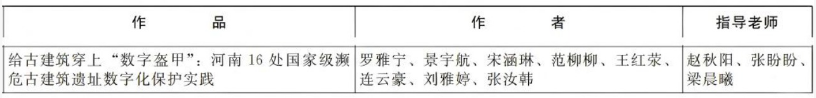 自赛事启动以来,太阳成tyc7111cc党委高度重视,团委牵头统筹,各二级学院积极响应,组建专家团队,从作品选题、方案设计、研究论证到答辩展示,为参赛学生提供全流程精准指导。其中,由赵秋阳、张盼盼、梁晨曦三位老师指导的参赛作品《给古建筑穿上“数字盔甲”:河南16处国家级濒危古建筑遗址数字化保护实践》斩获特等奖。