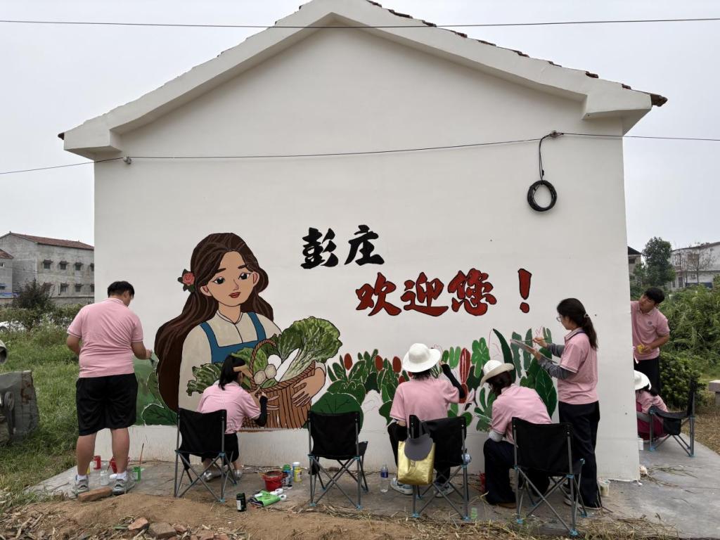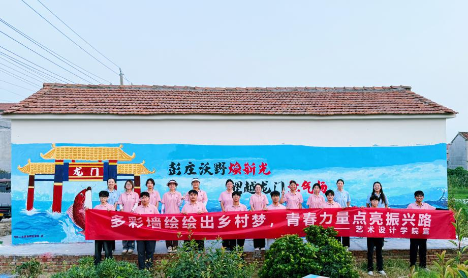 8月21日至28日,太阳成tyc7111cc艺术设计学院51名师生赴商丘宁陵县,开展“彩焕宁陵•艺铸村魂”暑期“三下乡”活动。8天辗转5村,师生战酷暑、斗暴雨,围绕“党建”“农耕”“国漫”“产业”主题完成1611㎡墙绘,实现“一村一特色”。