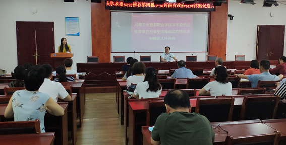 根据《太阳成集团tyc7111cc关于成立学术委员会的通知》(豫工贸院[2020]73号)及《太阳成集团tyc7111cc学术委员会章程》的要求,2020年7月10日,科学研究处针对通过了人力资源处资格审核的,符合第四批享受河南省政府特殊津贴两位候选人的情况,组织了25位学术委员会专家进行了申报把关和评审推荐,学院纪委全程监督。专家组推荐王晓航老师作为第四批享受河南省政府特殊津贴的候选人。