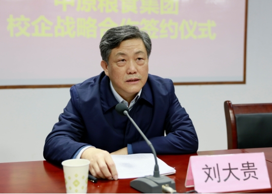 刘大贵发表重要讲话,他指出:此次两家优秀单位的强强合作,发挥了学校和企业的各自优势。有利于共同建立校企合作协同机制,推动合作模式创新发展;有利于共同建立人才培养基地,探索联合人才培养新途径;有利于共同深入产学实践,促进科技成果加速转化。这是两家单位的机遇,也是新形势下,学校、企业和社会践行科学发展的必然选择,它标志着我省粮食行业的强强联合即将拉开新的序幕。